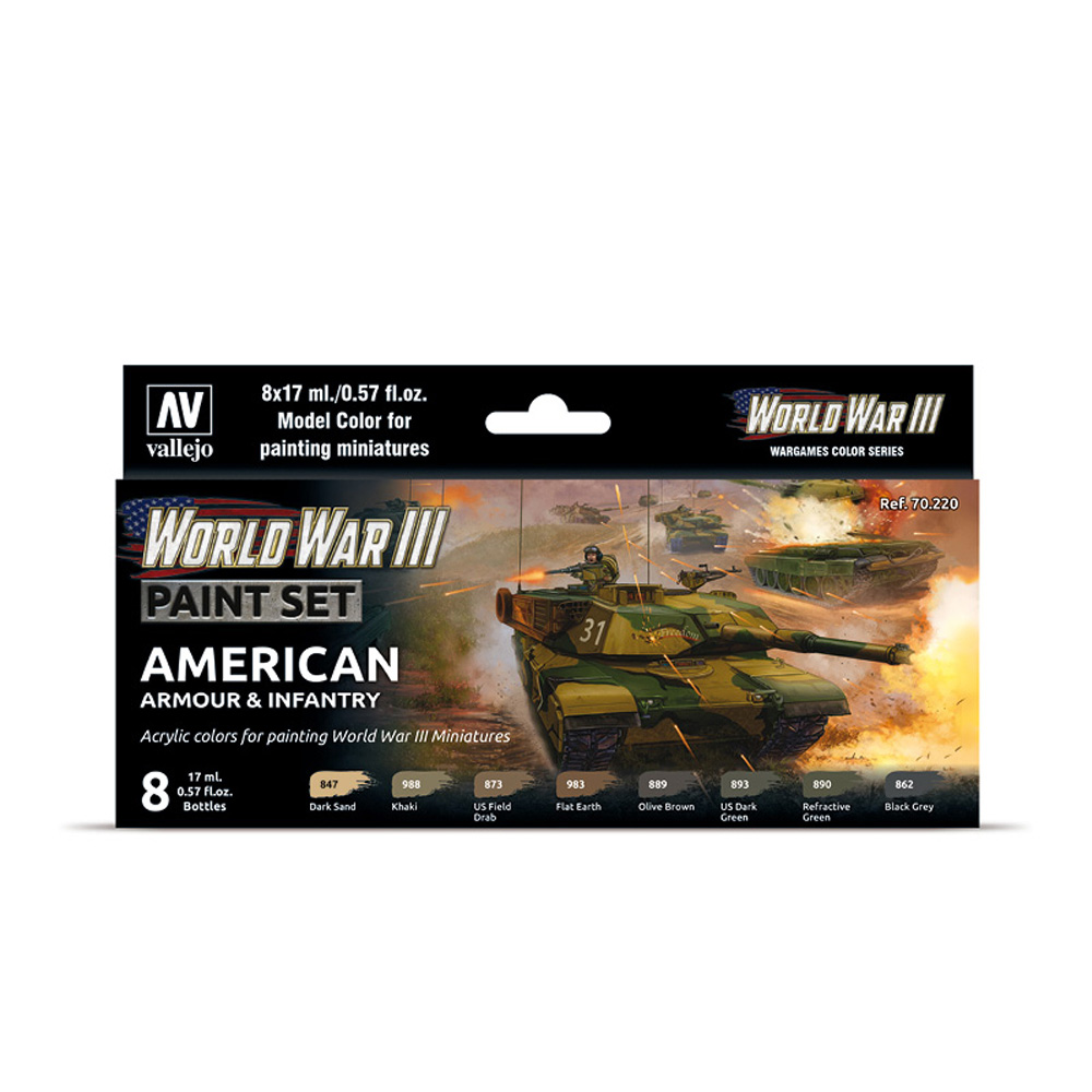 70.220 VALLEJO MODEL COLOR SET- AMERICAN ARMOUR and INFANTRY 17ml 8pcs set