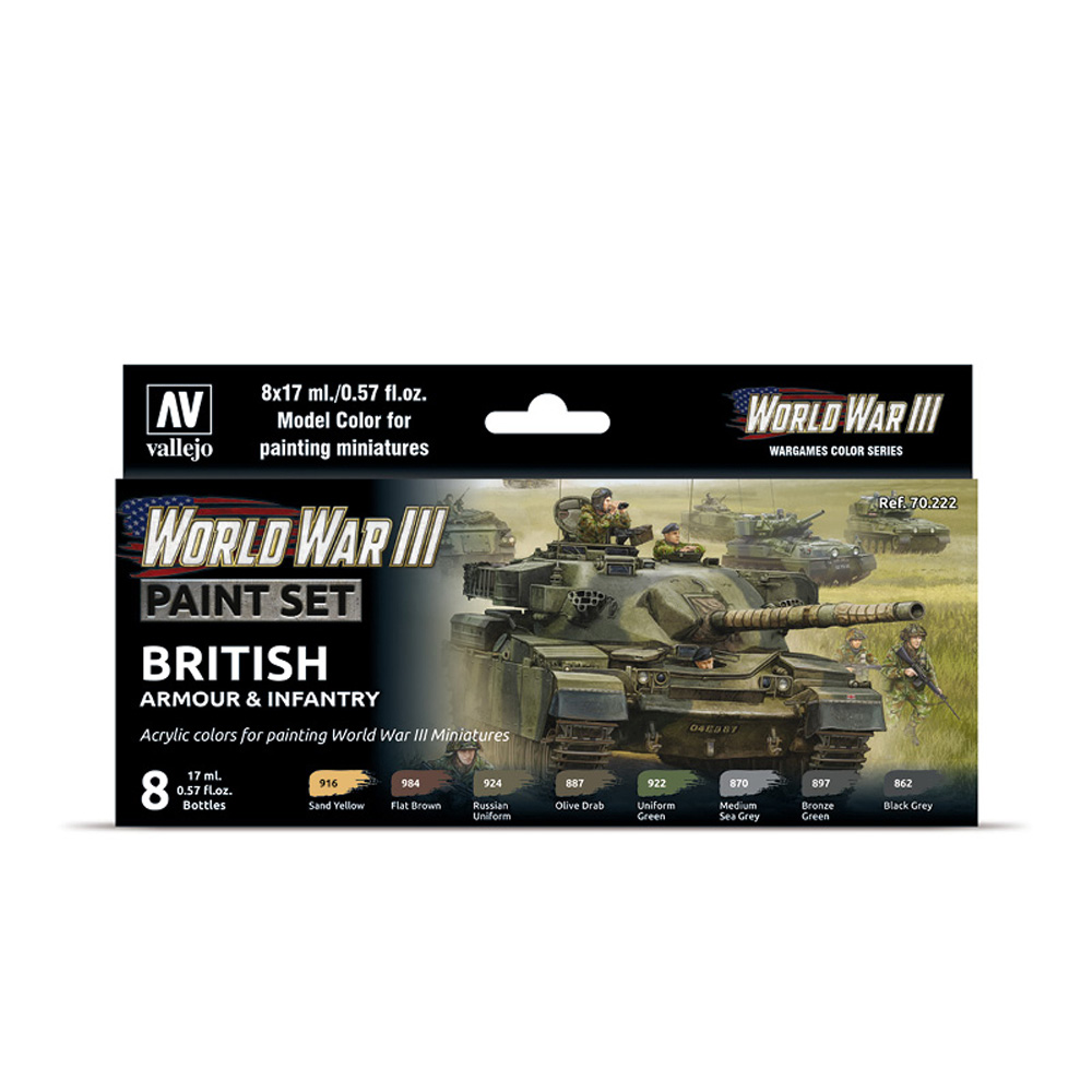 70.222 VALLEJO MODEL COLOR SET- BRITISH ARMOUR and INFANTRY 17ml 8pcs set