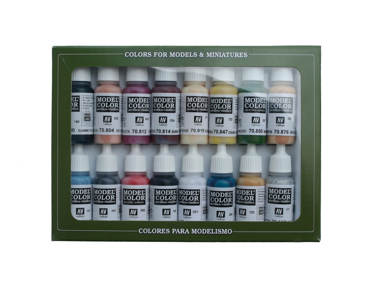 Collection of 16 color sets of Model Color for painting models and miniatures. Each one of these sets has a selection of special colors for painting vehicles, figures, etc.