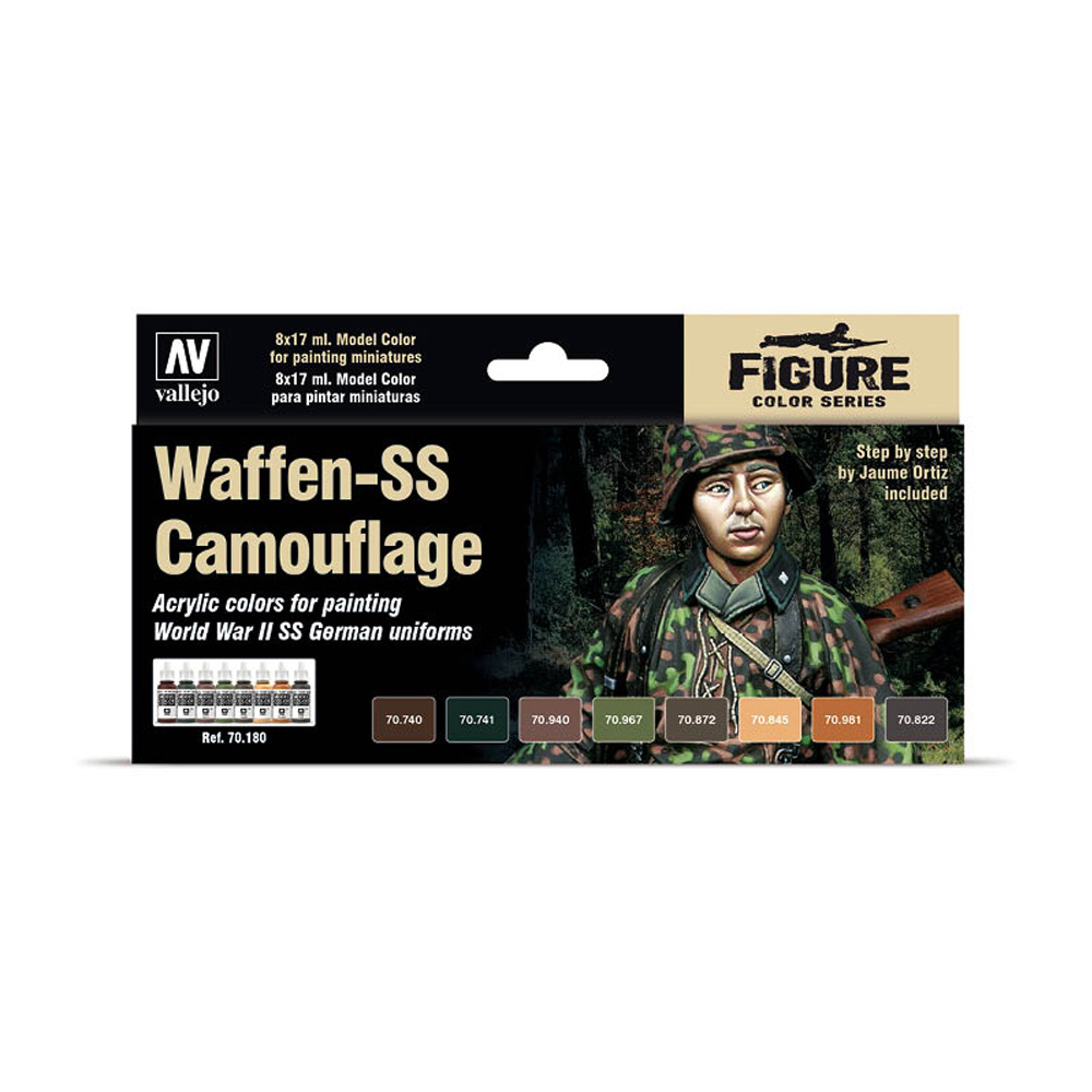 Selection of 8 Model Color in 17 ml. bottles to paint Plane Tree, Palm Tree and Oak Leaf camouflages in any of both seasonal pattern variations.