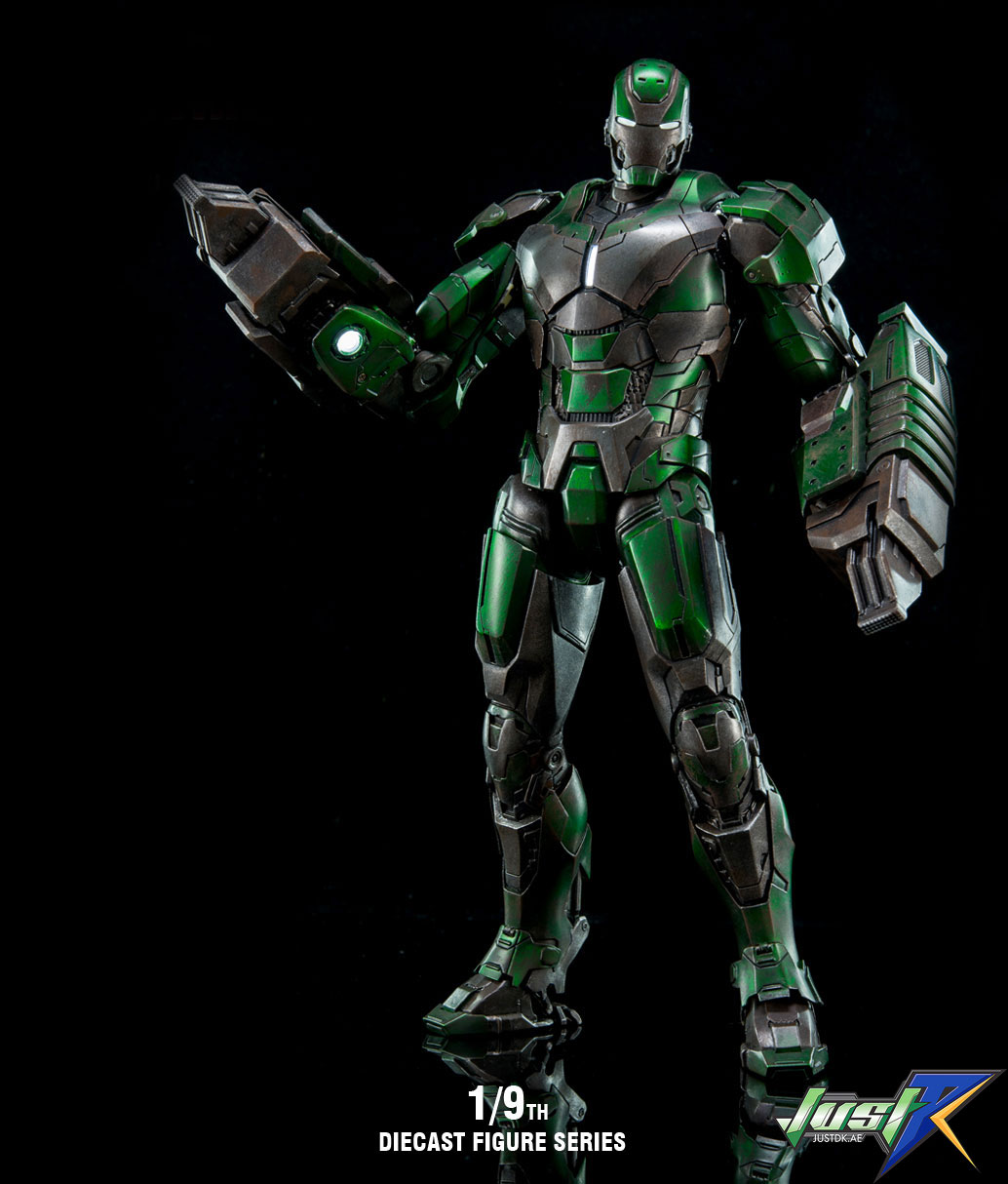 Product introduction Mark 26, also known as -Gamma- is Mark25 improved upgraded version with a black two-tone green design. Product features Around 24CM height , ultra high movable design can exhibit for various film dynamic pose. Alloy armor and alloy joint made the iron man good quality and bring people more reality. Exquisite painting, good looking, fully expresses the Iron man steel mechanical feeling. Light effect given from the eyes, chest lamp , hands and feet can restore such effects as the movie presenting. 2 pair palms provided, Electric drill on arm is retractable. Luminous base holder provided for displaying various flying action.